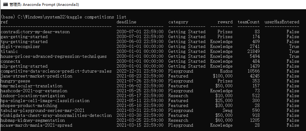 除了list,kaggle competitions 还有一些其他用法,不展开讲了。
