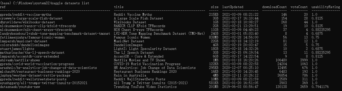 usage: kaggle datasets list [-h] [--sort-by SORT_BY]